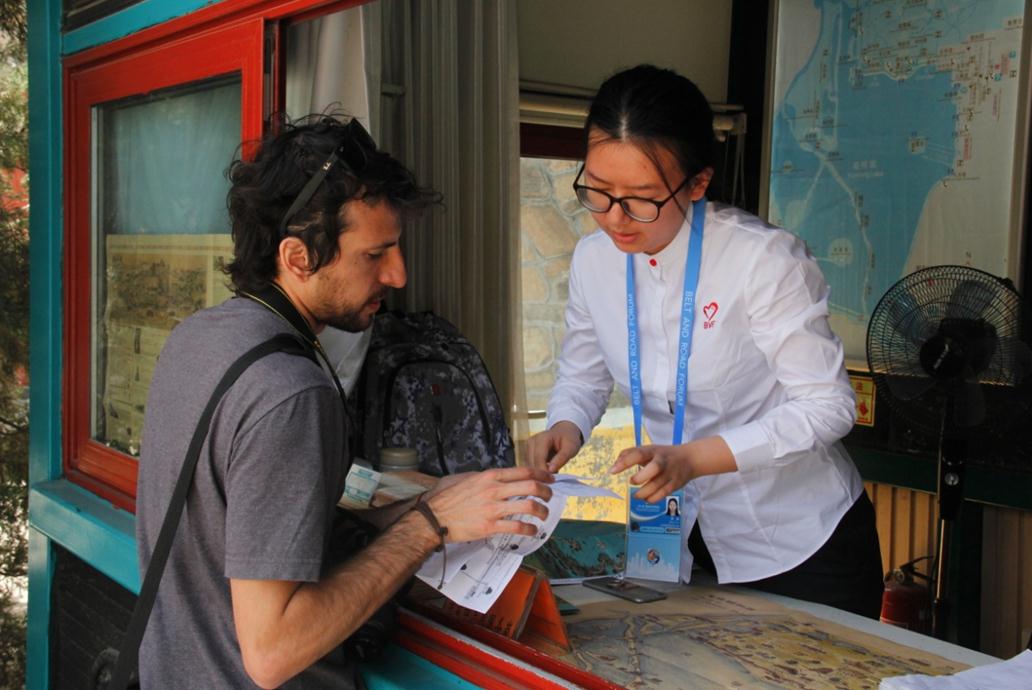 作为颐和园志愿者的骆橙橙、周韵2名同学,她们志愿服务的地点是在东宫门、北宫门和新建宫门,主要为来访宾客提供咨询引导服务。她们表示“能够参加这次论坛的志愿服务,对我来说既是一次机会又是一次历练,颐和园志愿服务同样是一带一路高峰论坛志愿服务的重要组成部分,我们为国内外来访宾客提供咨询服务,树立颐和园形象,也代表了北京的热情和友好。”