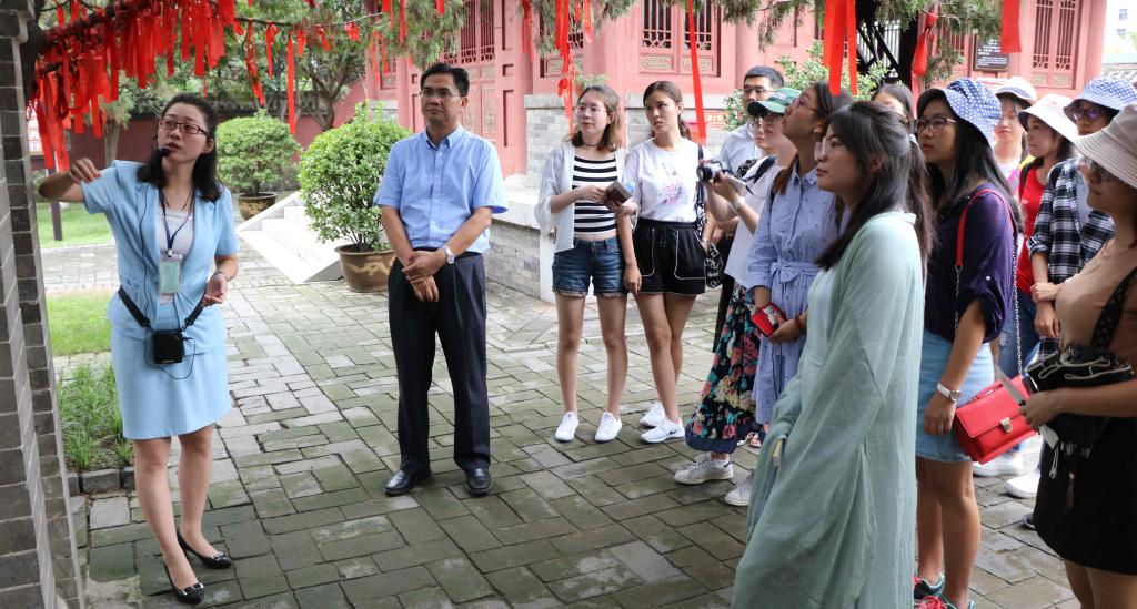 在暑期文化游学的第三天,北航高研院的师生来到了全国文明城市许昌市,高研院院长蔡劲松教授、办公室王佳发老师也专程赶到许昌市看望文化游学的师生们,陪伴学生一起观看了春秋楼、曹丞相府、灞陵桥等历史文化景点。