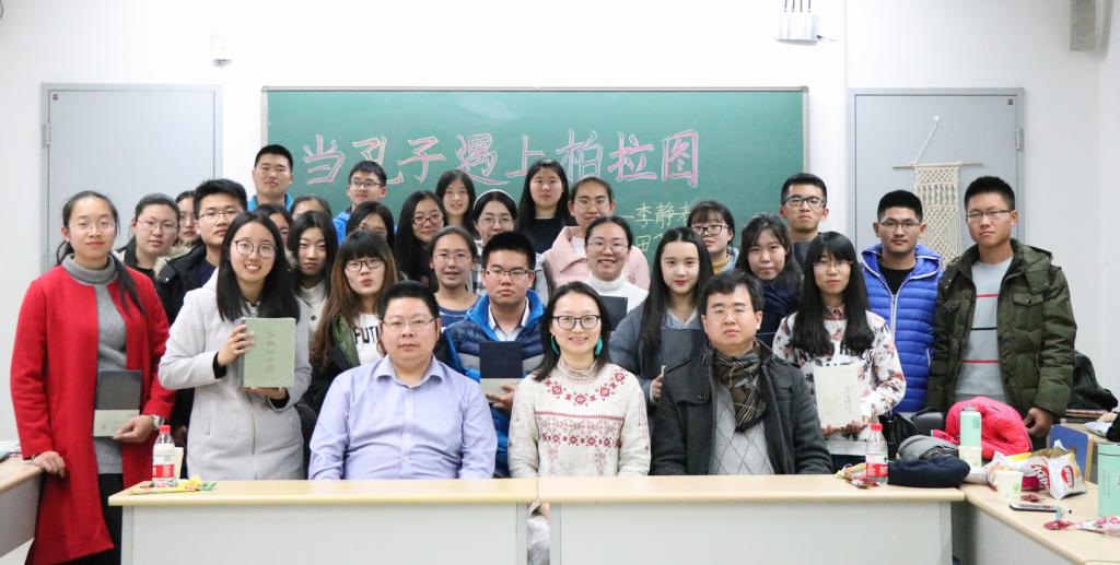 12月2日晚,9428cn太阳集团古天乐思想文化节系列活动 “当孔子遇上柏拉图”主题沙龙在沙河校区知行文科试验班专用教室J1-210顺利举行。本次交流会由高研院田飞龙老师和李静老师主讲,2016级知行文科试验班班主任段颀老师主持。三位老师与来自学校不同专业的三十多位同学进行了思想上的交流与碰撞,讨论了中西方思想在思维方式上的不同。