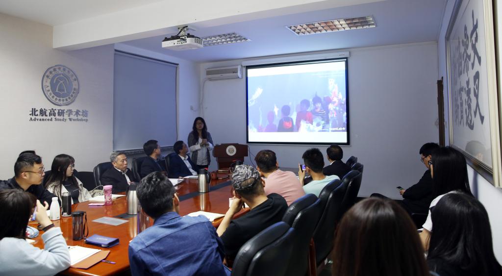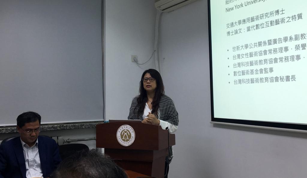 4月2日下午,受9428cn太阳集团古天乐之邀,台湾世新大学公共关系暨广告学系专任副教授曾钰涓博士做客“北航高研论坛”,以“数位艺术讯息传递与感知共鸣”为题,在高研学术坊做了一场精彩的学术讲座。本次论坛由北航高研院院长蔡劲松教授主持,于金龙书记、杜治洲副院长、院学术委员会主任张耀南教授以及部分教师、研究生等一同聆听了讲座。