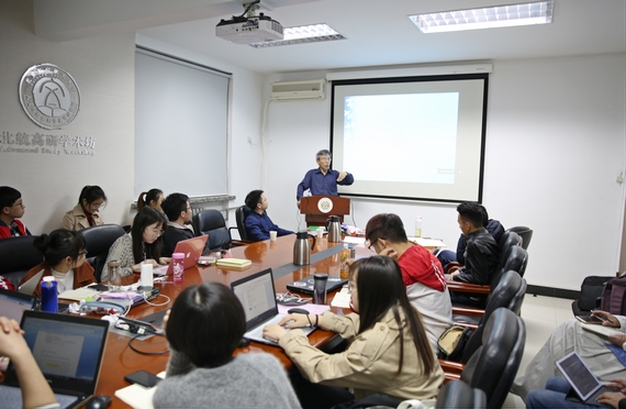 在讨论环节,陈思老师、王前、柯团玲、孙瑞霞、郭子琪、卢庆贺等同学围绕着 “多维空间”、“《周易》与科学”等问题展开了深刻讨论。邢教授认真答疑,启迪鼓励听众,要勇于发散思维,学会创新。