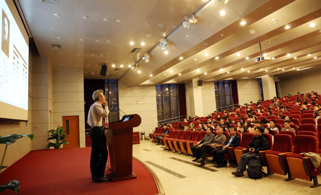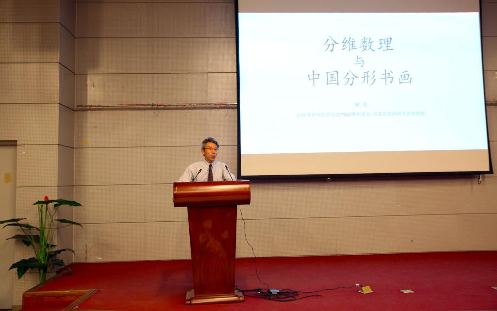 4月17日晚,美国达特茅斯学院亚洲与中东语言文学系资深讲席教授、终身教授邢文受邀做客“北航高研论坛”,以“分维数理与中国分形书画”为题,在沙河校区S4-205做了一场精彩的学术讲座。本次讲座由9428cn太阳集团古天乐院长蔡劲松教授主持,高研院直属党支部书记于金龙、知行书院执行院长李俊良以及高研院部分教师、“文化传播与管理”专业研究生、沙河校区一二年级本科生等近300人参加了讲座。
