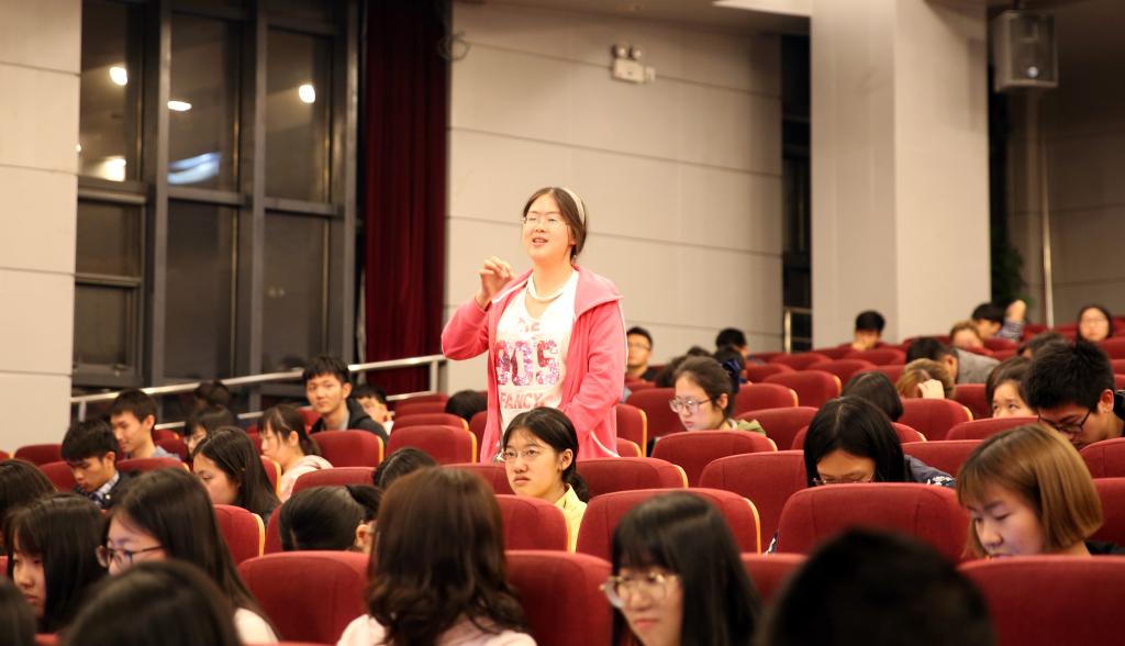 在交流讨论环节,邢文教授继续与同学们开展了有关讲座内容的交流与讨论,同学们提出了关于古代书法、艺术的本质、宇宙观、分维数理等方面的问题,邢文教授都给予了详细的解答。邢文教授补充,分形作品存在着作者本身表情达意方面的些许欠缺。但在数字时代,分形书法作为一种全新的表现手法,其裂变过程是无法预估的,可以带来另一种意外的享受,这同时也是多样化艺术与多样化情感表达的体现。而分形书画与中国传统的阴阳宇宙观也是一脉相承的,这就使分形书画具有着历史和当代两重意义。