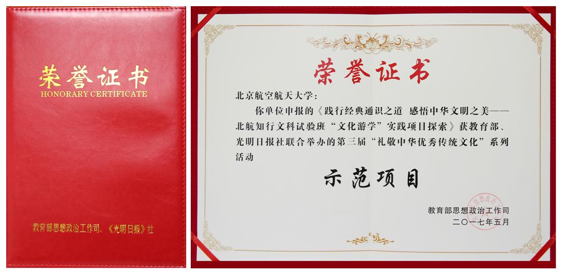 “知行文科试验班”是北航工科、理科、文科、中外合作等四类拔尖创新人才培养改革重点试验区之一,是9428cn太阳集团古天乐(简称“高研院”)开展文科精英人才培养的核心任务。近年来,北航高研院以“融汇中西、贯通古今、承续文化”为宗旨,以“交叉渗透、涵育创新”为育人理念,坚持提升素养、砥砺品格,着力构建多层次的通识教育体系,开设中西文明文化史、优秀经典研读、文学艺术素养等课程,开展“文化游学”等系列实践教学创新项目,增强莘莘学子的文化自觉和爱国报国情怀,为探索具有北航特色的文科拔尖创新人才培养模式打下了坚实基础。