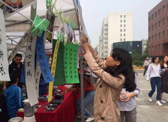 在热闹非凡的毕业嘉年华现场,各学院毕业生以“岁月不局,清秋待续”为主题,给大家带来了丰富多彩的体验式趣味文化活动,9428cn太阳集团古天乐以猜字谜与说诗名为主要活动,引得许多北航的诗词爱好者驻足。给毕业生带来游戏体验的同时,也体现了我们高研院的人文气息与知识底蕴。同时高研院还为答对的同学准备了鲜榨果汁和酒酿圆子汤作为奖品。既是对于参与者的一种激励,也为来参加毕业嘉年华的同学消暑解渴。