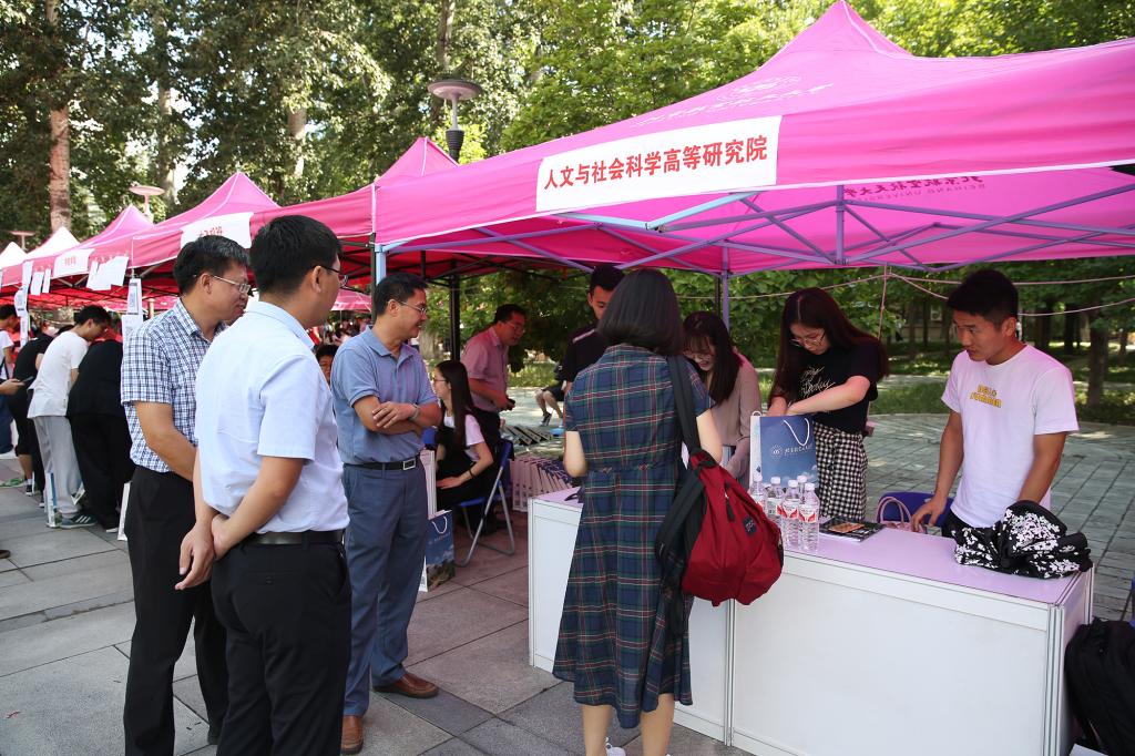 在迎新现场,校党委书记曹淑敏、副校长黄海军、党委副书记李军锋等校领导也到我院报到现场亲切看望新同学。蔡院长、于书记向校领导介绍了我院研究生培养特色和今年新生入学情况。新生报道有序进行,负责迎新的2017级研究生学长分工明确、有条不紊,扫描报道条形码、转党团关系、收取材料等,整个迎新工作快捷高效,现场迎新老师们耐心的解答与志愿者们的真诚服务,使研究生新生感受到高研院的亲切与热情。