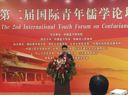 2018年9月15日至16日,第二届国际青年儒学论坛在孟子故里山东省邹城市举办。本次论坛由中国孟子研究院、中国孟子学会和邹城市人民政府联合主办,国际儒学联合会、清华大学国学院、北京大学哲学系、中国社科院哲学研究所、中国人民大学国学院、光明日报国学版、中山大学哲学系等单位协办。清华大学国学研究院院长陈来教授、中国社会科学院哲学所研究院李存山教授、中国人民大学国学院副院长梁涛教授等专家学者与来自中、美、英等12个国家和地区的近百位儒学研究青年学者齐聚一堂、研讨交流。