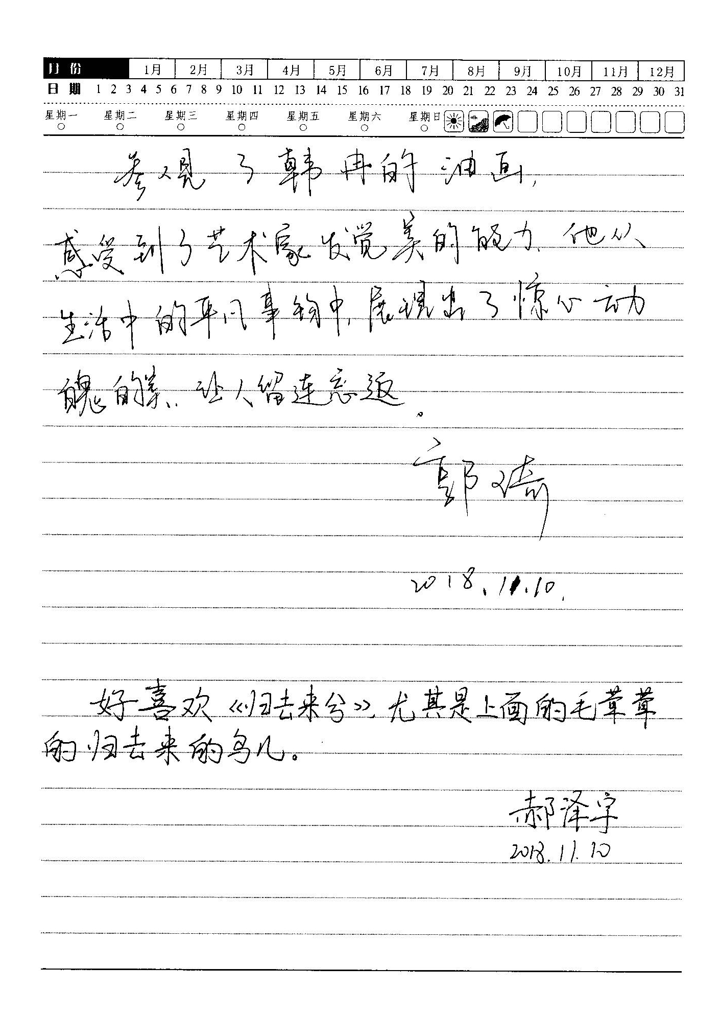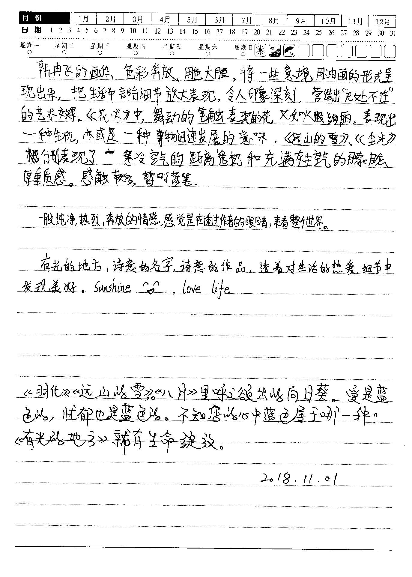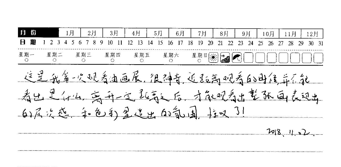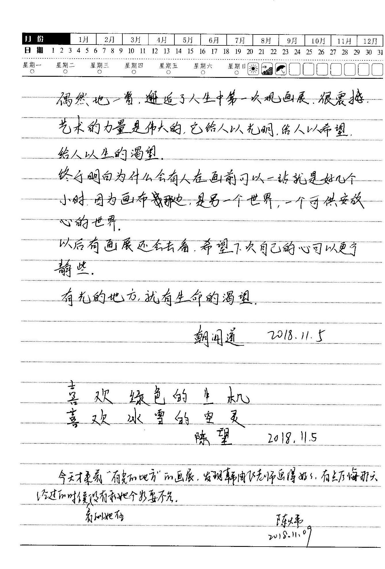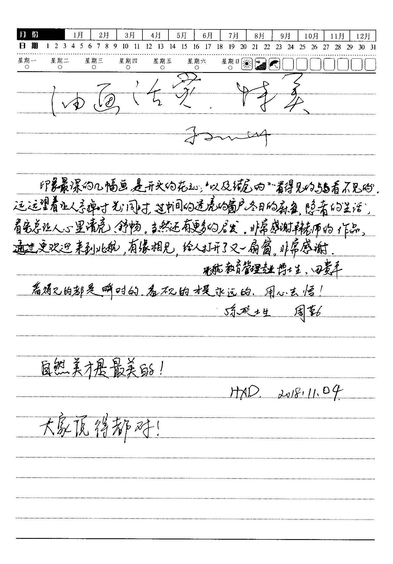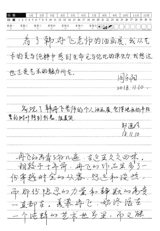 2018年10月31日至11月14日,北航艺术馆隆重推出了“有光的地方”韩冉飞油画作品展,共展出韩冉飞近十年的油画作品50余幅,不仅展现了韩冉飞学院派的创作功底和扎实技法基础,更可贵的是她对艺术理想的追求、对生命性灵的纯粹感知跃然于画面笔触之中,同时也投射其沉稳、平静、不求功利的创作心态,她所带来的朴质率真、凝练厚重、大气深沉的创作面貌,给观众们带来一场豪华的艺术盛宴,参观者络绎不绝,北航师生以及校外艺术爱好者纷纷前来观看,对此次油画作品展表示赞许并留言。