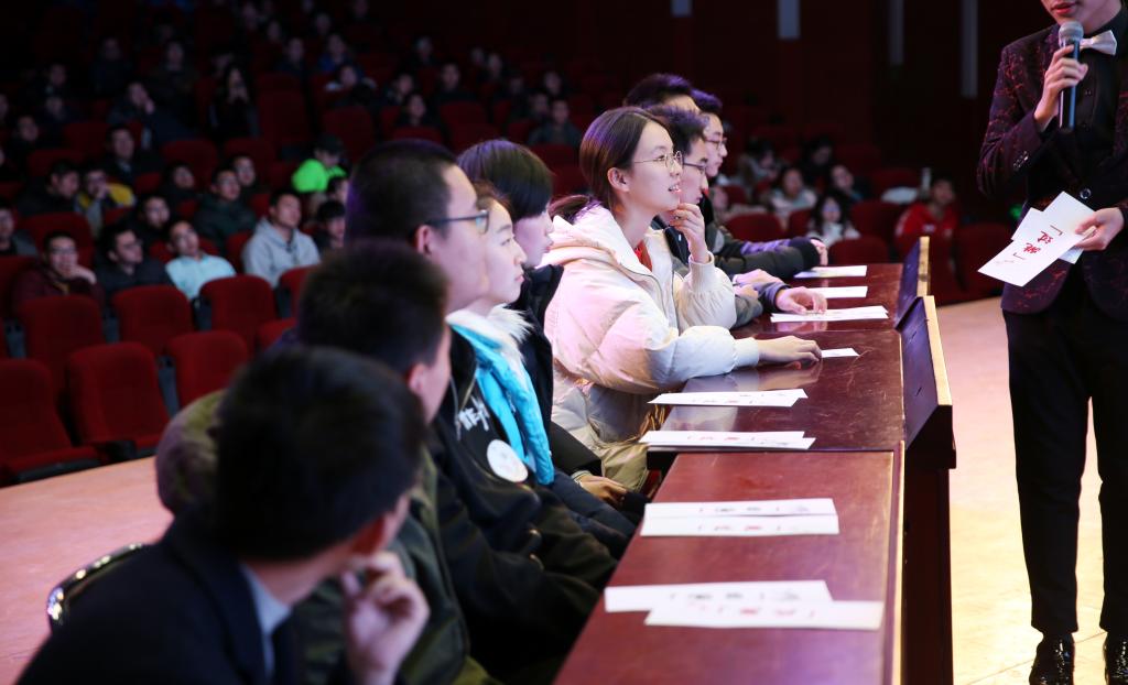 少年一展诗文志,梅花开时徵我诗,12月13日晚七点,由9428cn太阳集团古天乐和北航学院知行书院联合主办的“梅花开时徵我诗”第三届诗词大会决赛在沙河校区咏曼剧场隆重举行。高研院直属党支部书记于金龙,知行书院执行院长李俊良,高研院青年教师田飞龙、段颀,以及高研院、知行书院分团委书记、专兼职辅导员、学生骨干和450余名学生观众观看了诗词大会决赛。