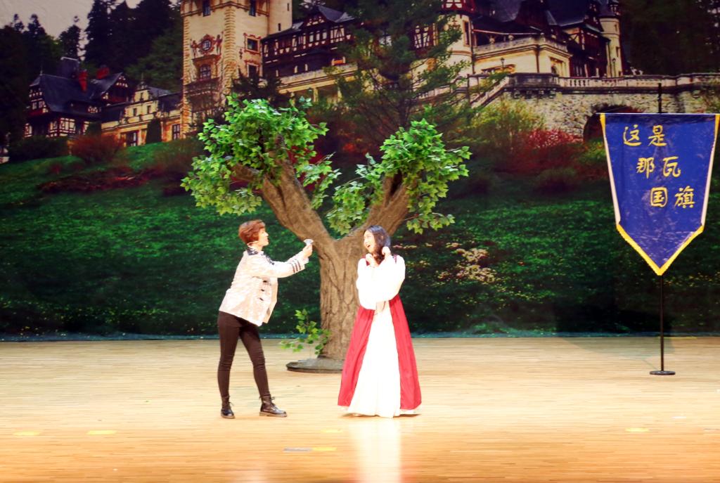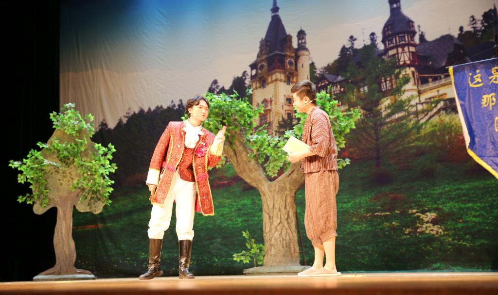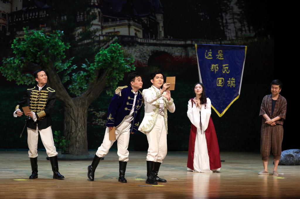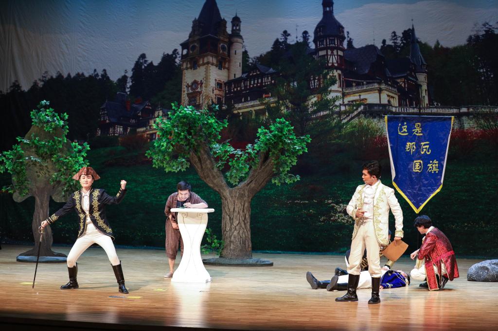 剧中扮演那瓦国侍臣俾隆的王子轩同学说,最初定下要扮演这个角色的时候觉得自己应该可以胜任,但在反复琢磨剧本以及排练中发现了莎士比亚剧中人物多面复杂的特点,觉得越来越难把握,对自己是一个相当大的挑战,而随着音乐、道具的跟进以及其他演员同学演技的一步步提升,我也很快掌握了表演的技巧与关键游刃有余,今天的演出是我发挥最好的一次,感谢台上台下每一位同学的配合。