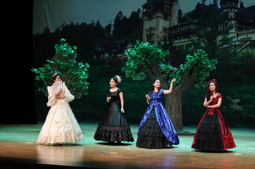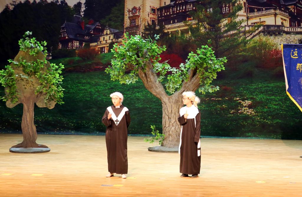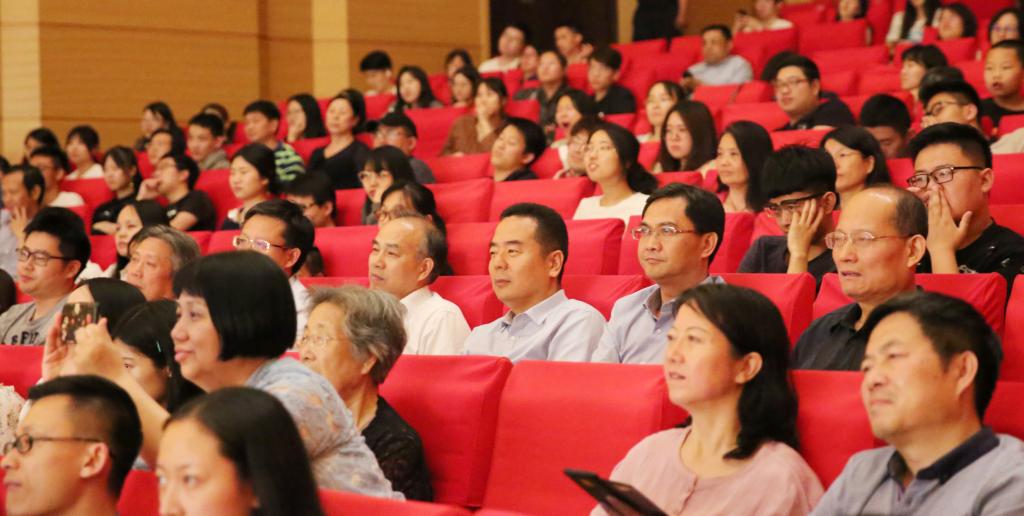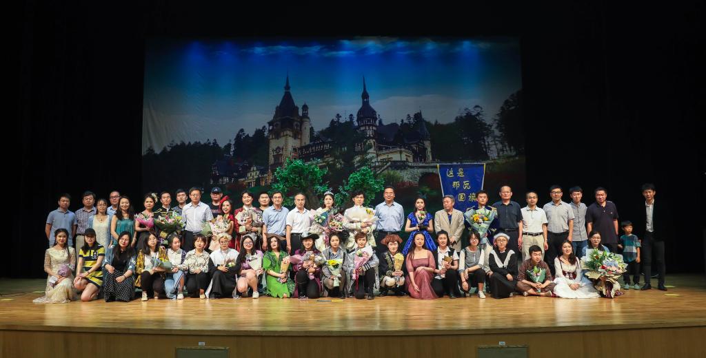 演出全程持续了近两个小时,同学们深情的投入和生动的表演,不时赢得了现场观众的热烈掌声,他们以非专业演员的身份,很好地诠释了经典戏剧的艺术魅力,给大家带来了一场视觉盛宴,特别是演出结束后谢幕环节,观众们都被带入到欢快愉悦的演出剧情中,全场观众报以热烈的掌声和欢呼声,观看演出的领导、老师和同学们纷纷走向舞台,对同学们的精彩表演表示祝贺并合影留念。