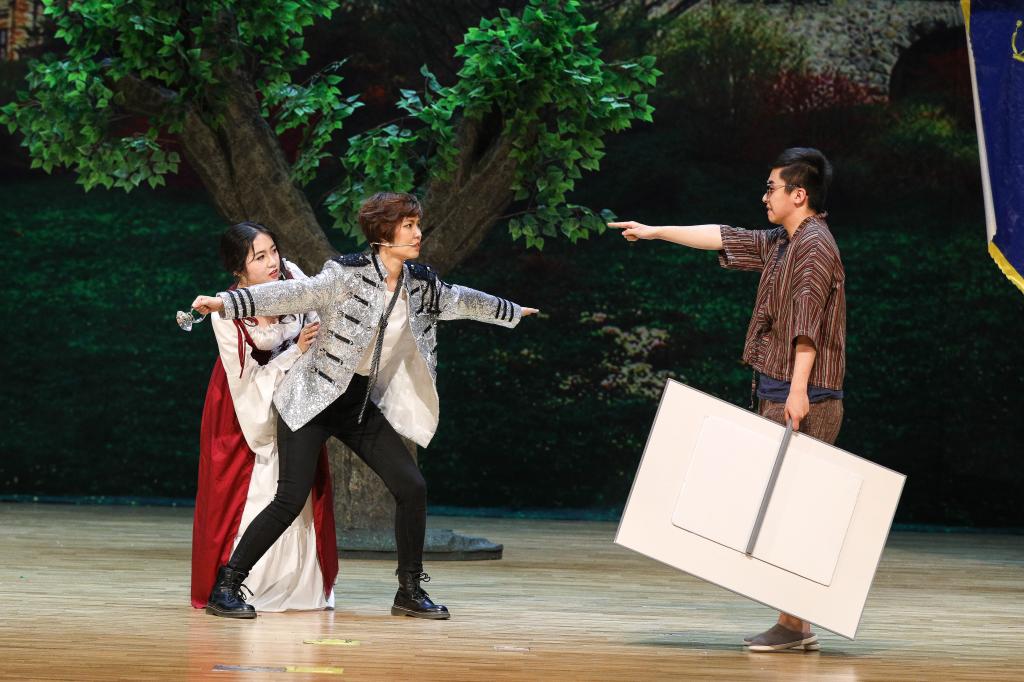 经典戏剧改编、创作及演出,是高研院文科拔尖创新人才培养的重要教学实践环节,本届知行文科试验班同学自2018年12月开始筹备,经过师生多次商讨,最终选定莎士比亚经典喜剧《爱的徒劳》进行改编创作。学院为毕业大戏编排邀请了国家大剧院演出部汪遇星担任总导演,学生骨干成立导演组,具体负责日常演出排练。本届毕业大戏从台词改写、选角、分组排练,到演出剧务、服装、宣传,经过历时近半年的精心筹备,用勤奋与真情诠释了经典剧目的艺术精髓,最终为大家呈现了一场精彩的演出。