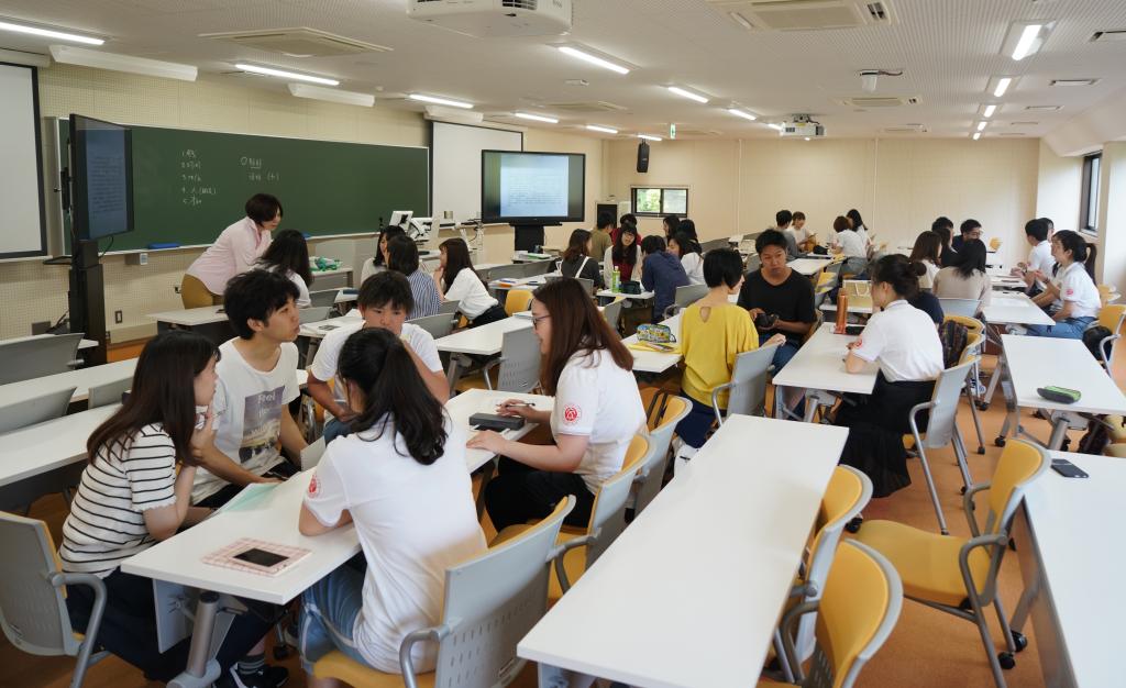 课上,是关于“幸福”的汉语教学主题讨论,高研院研究生刘颍首先进行了汉语阅读材料领读,中西千香副教授随后就相关主题进行提问、解读和讲授。在课程讨论环节,2名中国学生与日本3名学生组成十余个讨论组,针对“人、钱、时间、地位、才智”等5个影响因素在幸福中的重要性进行了研讨排序,最后进行分组汇报。