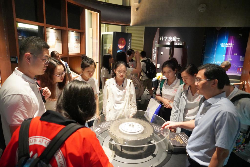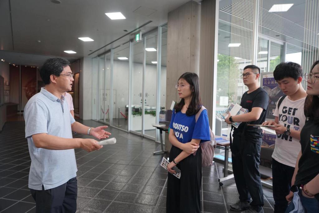 7月7日下午,高研院研究生实践教学团一行14人顺利抵达日本东京,经过短暂的修整之后前往日本未来科学馆。蔡劲松院长在未来科学馆内,以科普展陈为现场教学主题,引领同学们深入观察未来科学馆如何推动展陈、项目与观众的互动,从而达到对观众传播知识、开展科普教育的目的,让观众更好的融入到科技馆的文化氛围之中。