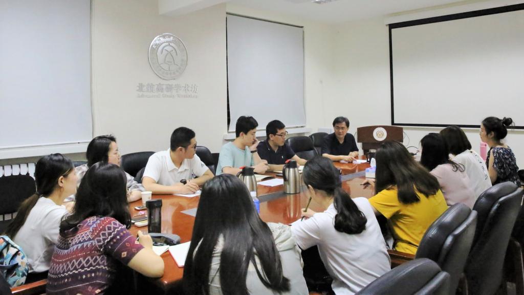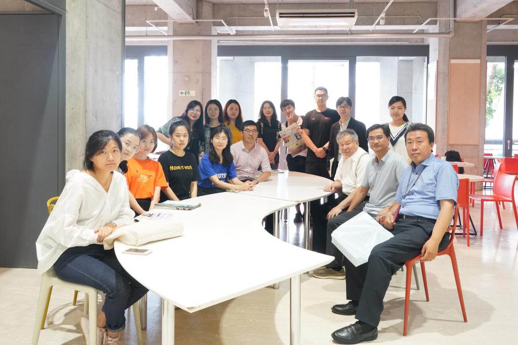 在会见中,李庚教授对蔡劲松院长和代表团的其他师生成员表示了热烈欢迎,并亲切地请代表团成员逐一作了自我介绍,以及对今后学业和工作的设想,让现场气氛很快变得活跃起来。李庚教授对北航高研院师生到日本开展海外文创实践教学与交流表示赞赏,并介绍了京都造型艺术大学和日本在文化艺术传播领域的相关情况,希望同学们今后在弘扬传统文化,增进中日文化传播与交流方面作出努力。李庚教授也对“文化传播与管理”这一学科谈了自己的看法,认为这是目前中国最需要,也是最前沿的学科,传播可以是文字的,也可以是非文字的,比如舞蹈、音乐、图形等,图形传播作为文化传播的重要方式,有很强的穿透力。
