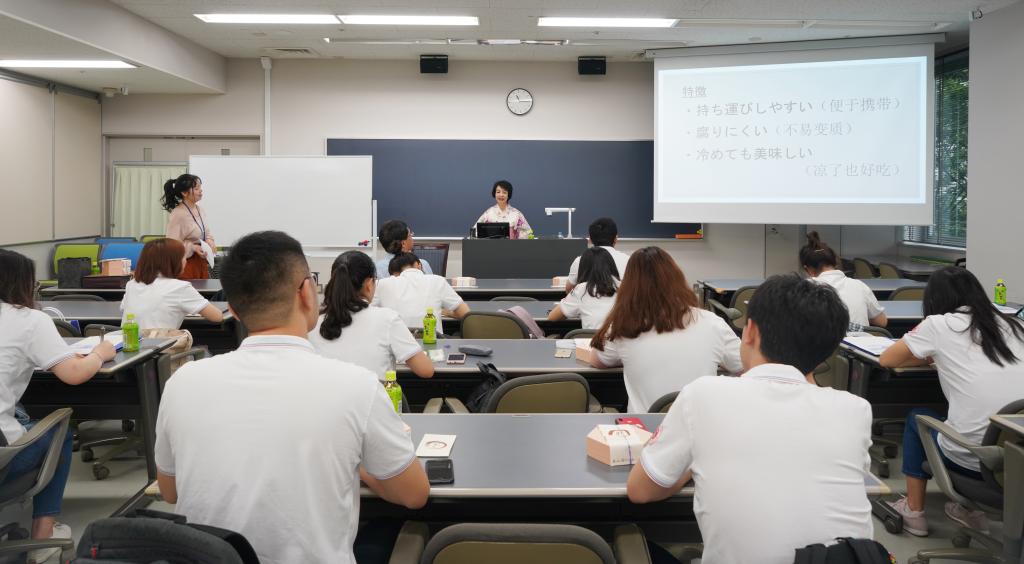 7月9日上午,实践教学团一行来到日本工学院大学孔子学院,孔子学院日方院长高桥惠子女士以《日本饮食文化—便当的起源与发展》主题,为同学们带来了一场精彩报告。