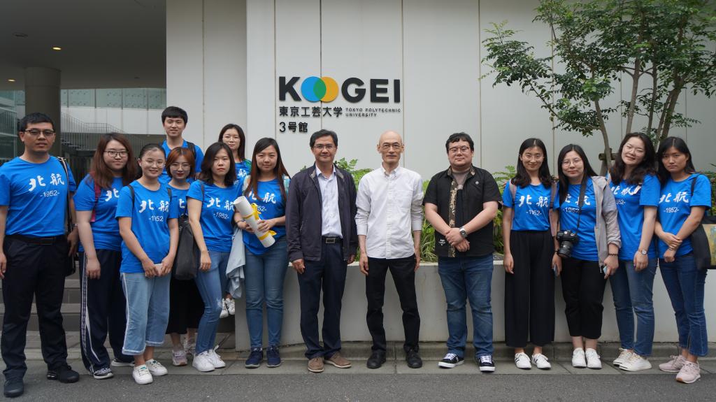 课堂教学结束后,在笠尾敦司教授的带领下,实践教学团一行参观了东京工艺大学的教学、实践和公共展示场所,并邀请大家在学生食堂进餐。东京工艺大学创办于1923年,设有艺术学院(摄影学、映像学、设计学、传媒艺术表现学、动画学、漫画学、游戏学)、工学院,研究生院设有艺术学研究科和工学研究科,其优势特点是将工学与艺术学创造性地融合,许多有益的经验和做法对于我国文化艺术发展及传播管理,具有重要的借鉴价值。