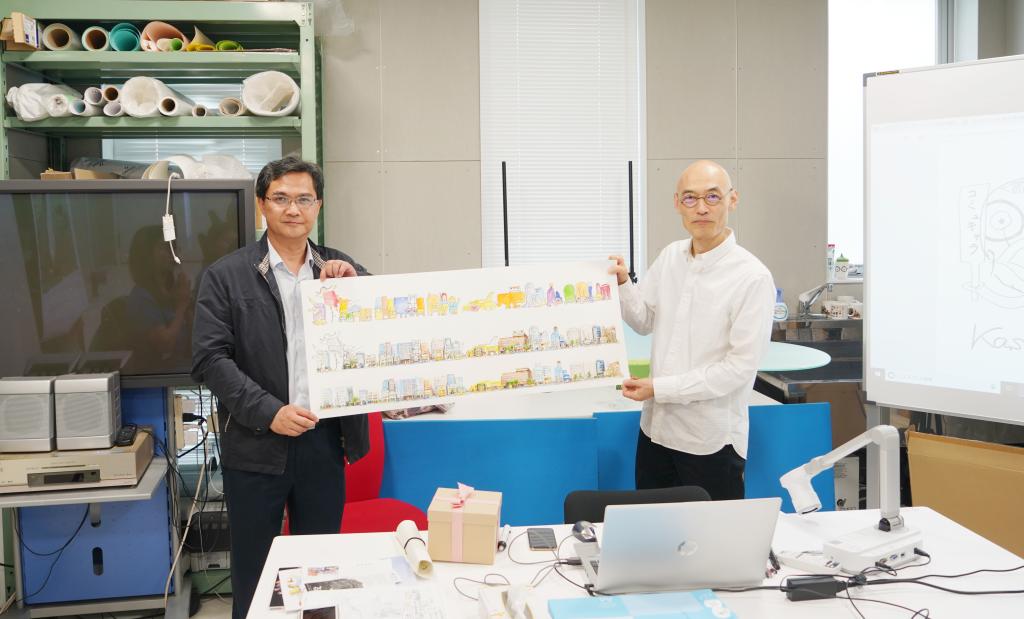 课堂上,高研院院长蔡劲松教授对笠尾敦司教授的精彩讲授表示感谢,并邀请他适时到北航访问、讲座和举办展览。双方互赠了纪念品,笠尾敦司教授特别将他和社区居民共同创作的艺术介入城市街区的版画赠送高研院。该作品通过将街道楼宇拟人化,并由居民亲自参与拟人化创作过程的方法,拉近了人和居所之间的情感距离。