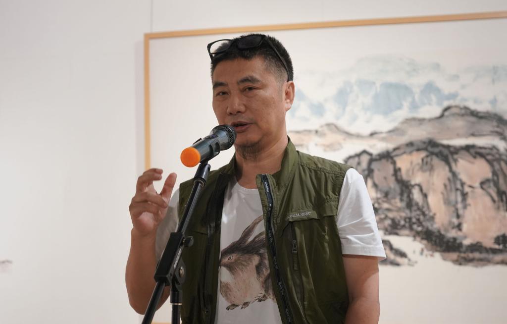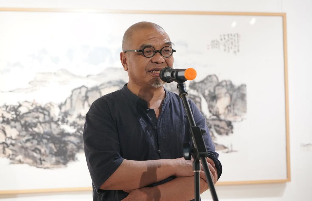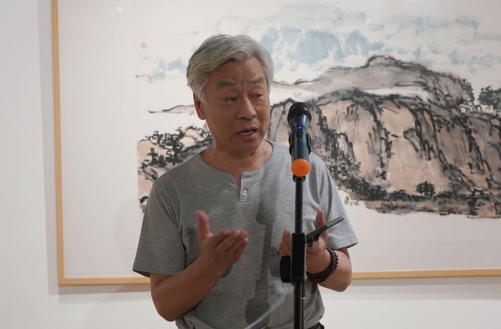 嘉宾们在致辞中,对老村的绘画个展在北航艺术馆举办表示诚挚的祝贺,在深入分析老村绘画的创作手法、风格特点等的同时,对其近年来在山水画、人物画创作领域独辟蹊径,取得的丰硕成果给予充分肯定和高度评价。中国艺术研究院研究员柯文辉谈到,老村作为著名作家,也是文人,穿梭于文人山水与民间艺术之间。因为进入不深,本色未被浸染,不随便倾向一端,而构成很少见的某种优势。中央文史研究馆馆员、中国画学会副会长程大利谈到,老村的画有丰富的精神气,有深刻的精神气。他的作品给当代沉闷的绘画风气带来了一股新风。