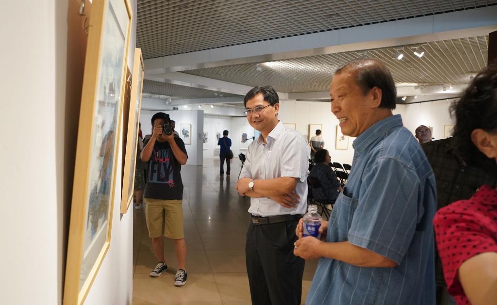 老村在开幕式上,与大家分享了自己的创作感悟与体会,并陪同出席开幕式的嘉宾、观众一同观看展览作品。