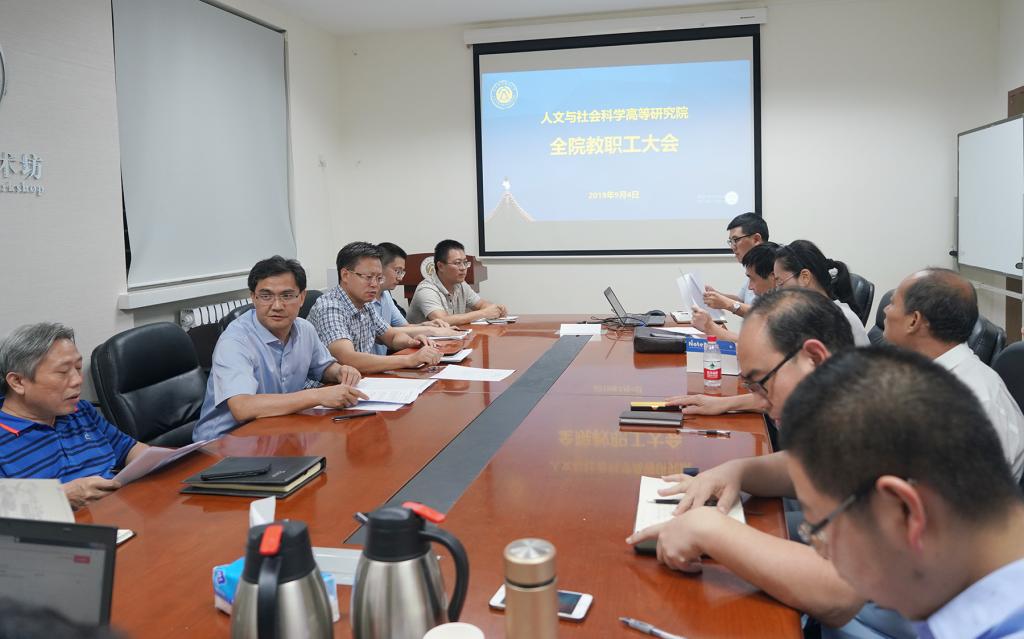 蔡劲松院长向全院教职工传达了学校2019年暑期工作会精神,他指出,2019年暑期工作会的主题是“深入贯彻落实全国教育大会精神,全面加快“双一流”建设”,学校领导分别从学科建设、科学研究、师资队伍建设、金课建设、管理服务、思政建设等方面,总结梳理了近期取得的各项成绩和工作进展,分析研判了学校当前发展面临的形势和要求。