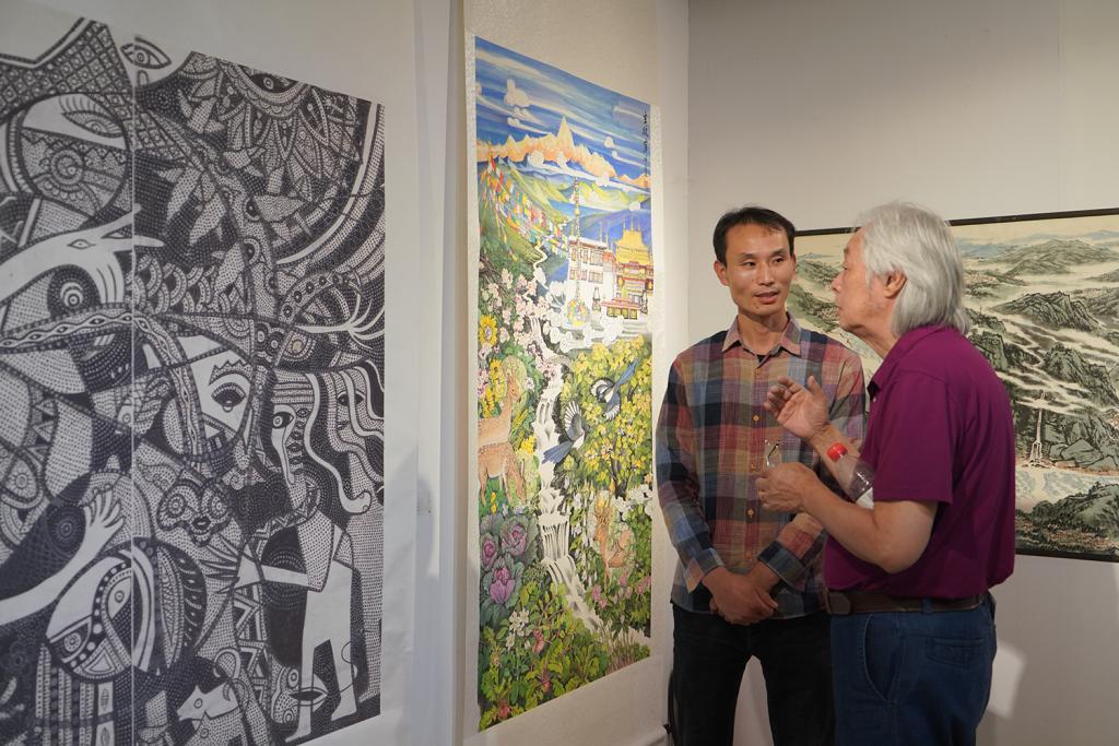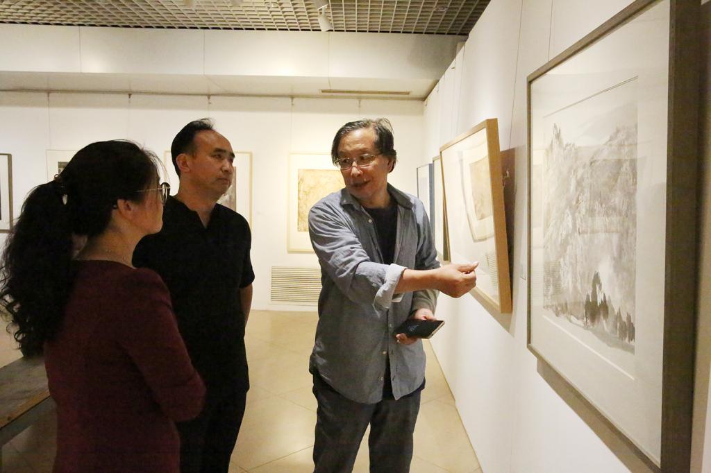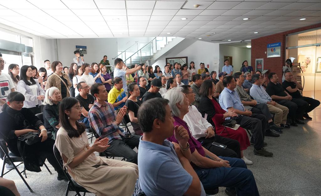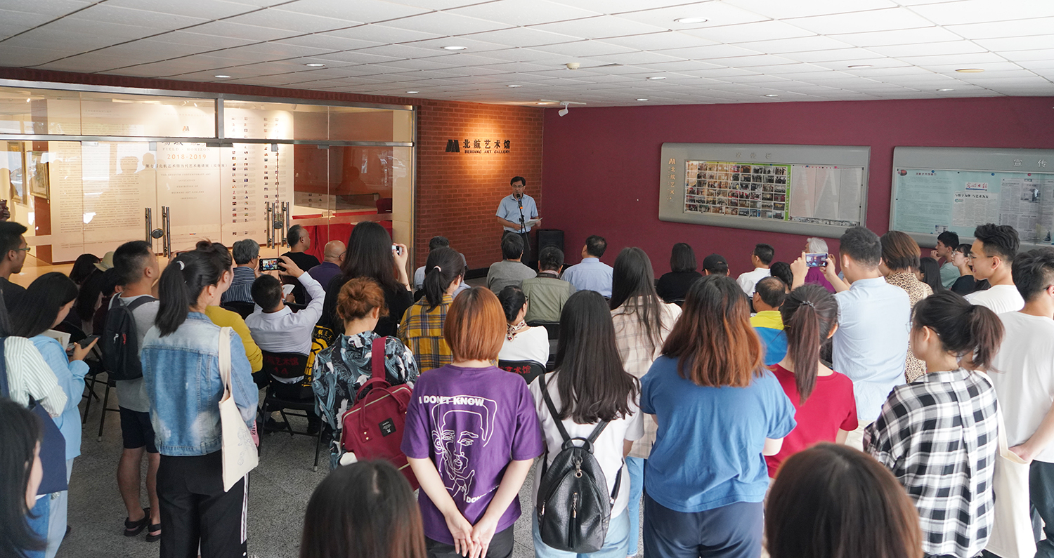 太阳集团网站古天乐人文学院(公共管理学院)院长、人文社科高研院(文化与艺术传播研究院)院长、艺术馆馆长蔡劲松教授主持展览开幕式,并宣读了北航党委副书记赵罡教授的书面致辞。参展艺术家代表、学校师生代表百余人参加了开幕式。