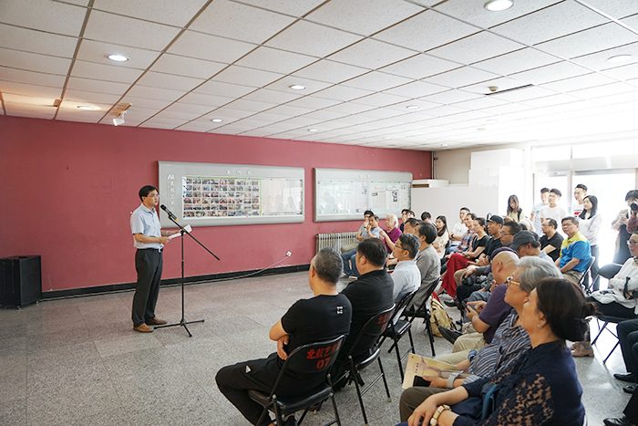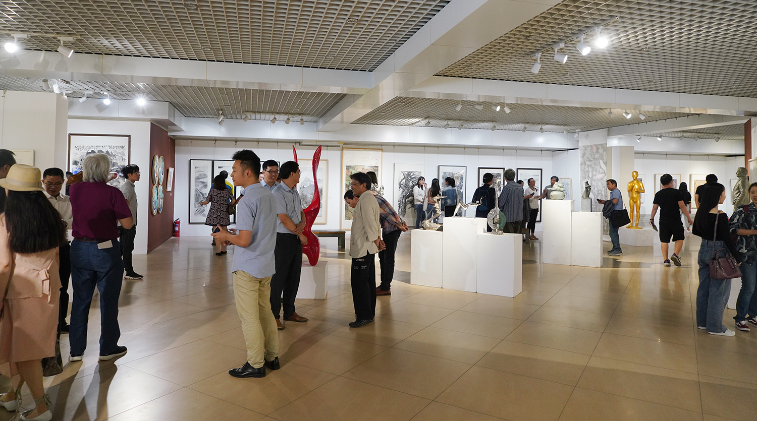 太阳集团网站古天乐人文学院(公共管理学院)院长、人文社科高研院(文化与艺术传播研究院)院长、艺术馆馆长蔡劲松教授主持展览开幕式,并宣读了北航党委副书记赵罡教授的书面致辞。参展艺术家代表、学校师生代表百余人参加了开幕式。