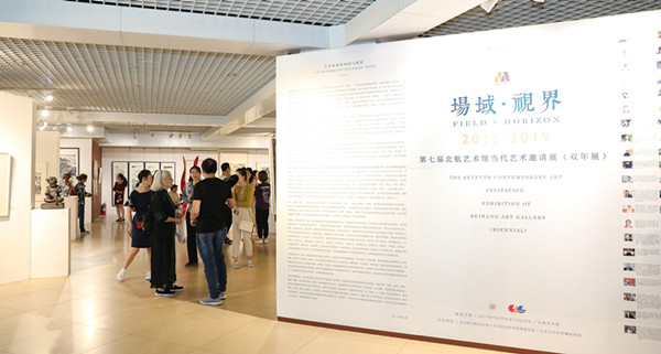 2019年9月19日,“场域•视界”第七届北航艺术馆当代艺术邀请展(双年展)正式拉开帷幕。当天下午,来自全国各地的参展艺术家代表汇聚展览现场,探讨、交流当代学院艺术发展趋向、创作取向及美育价值。展览共邀请了80多位艺术家的作品参展,包括水墨、彩墨、油画、版画、雕塑、装置、综合材料等多个类别,向师生和社会公众呈献了一场具有学术性、独创性,体现当代艺术发展态势的学院艺术盛宴。