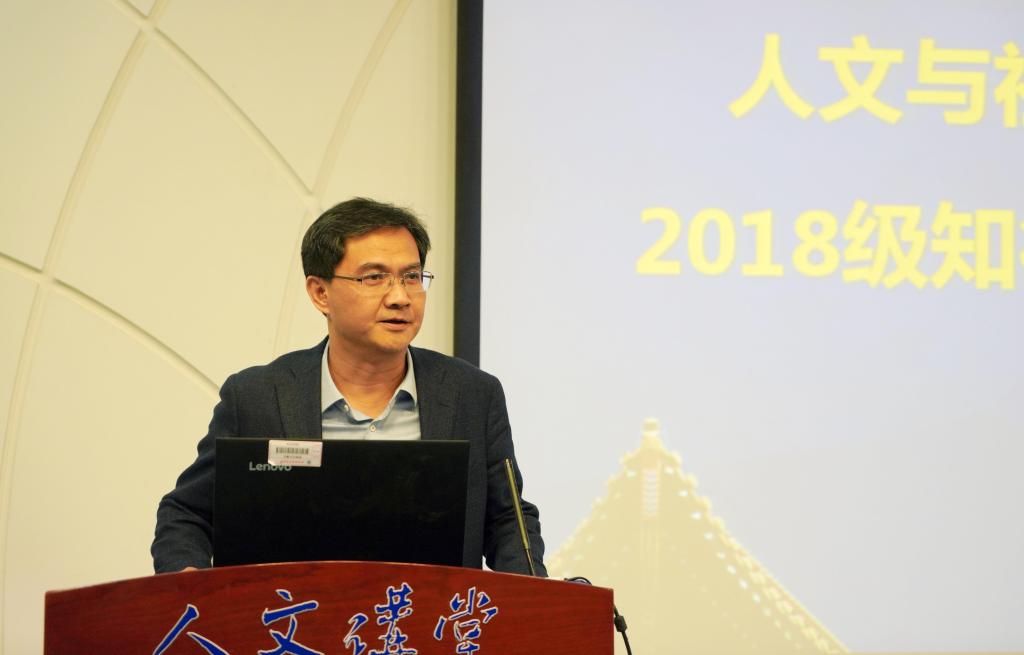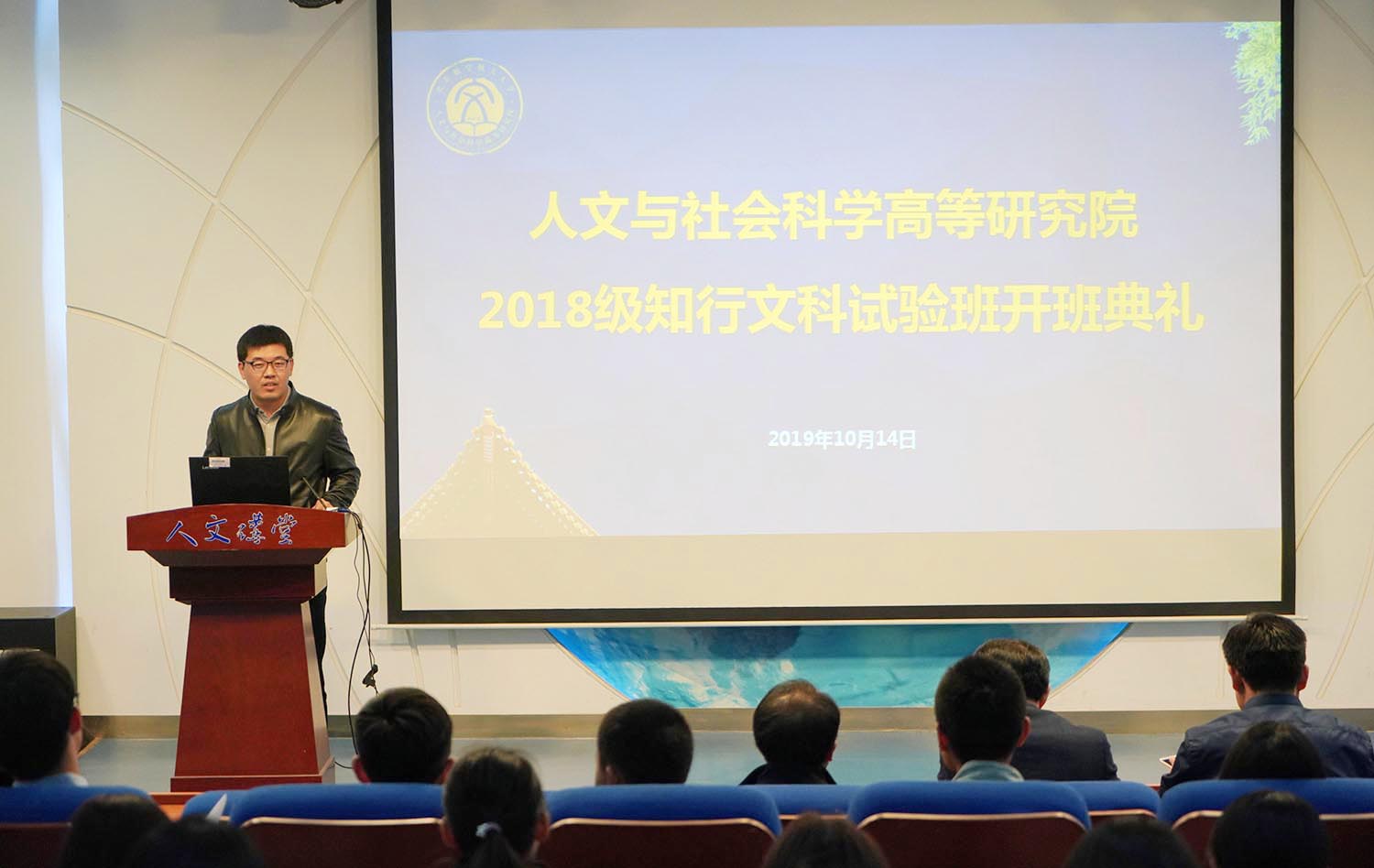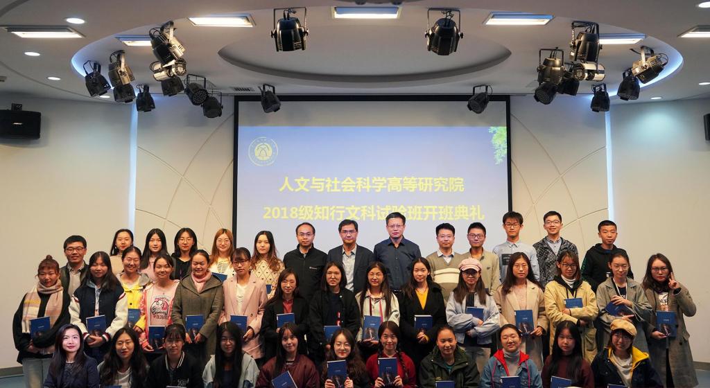 2019年10月14日,高研院在人文讲堂举办了2018级知行文科试验班开班典礼。高研院院长蔡劲松、书记于金龙、副院长杜治洲、教师代表顾家宁等出席开幕式,2015级文实班毕业生杨悦芊、2016级文实班学生代表秦依依,以及2018级文实班35名学生参加开班典礼,仪式由分团委书记、2018级辅导员王佳发主持。