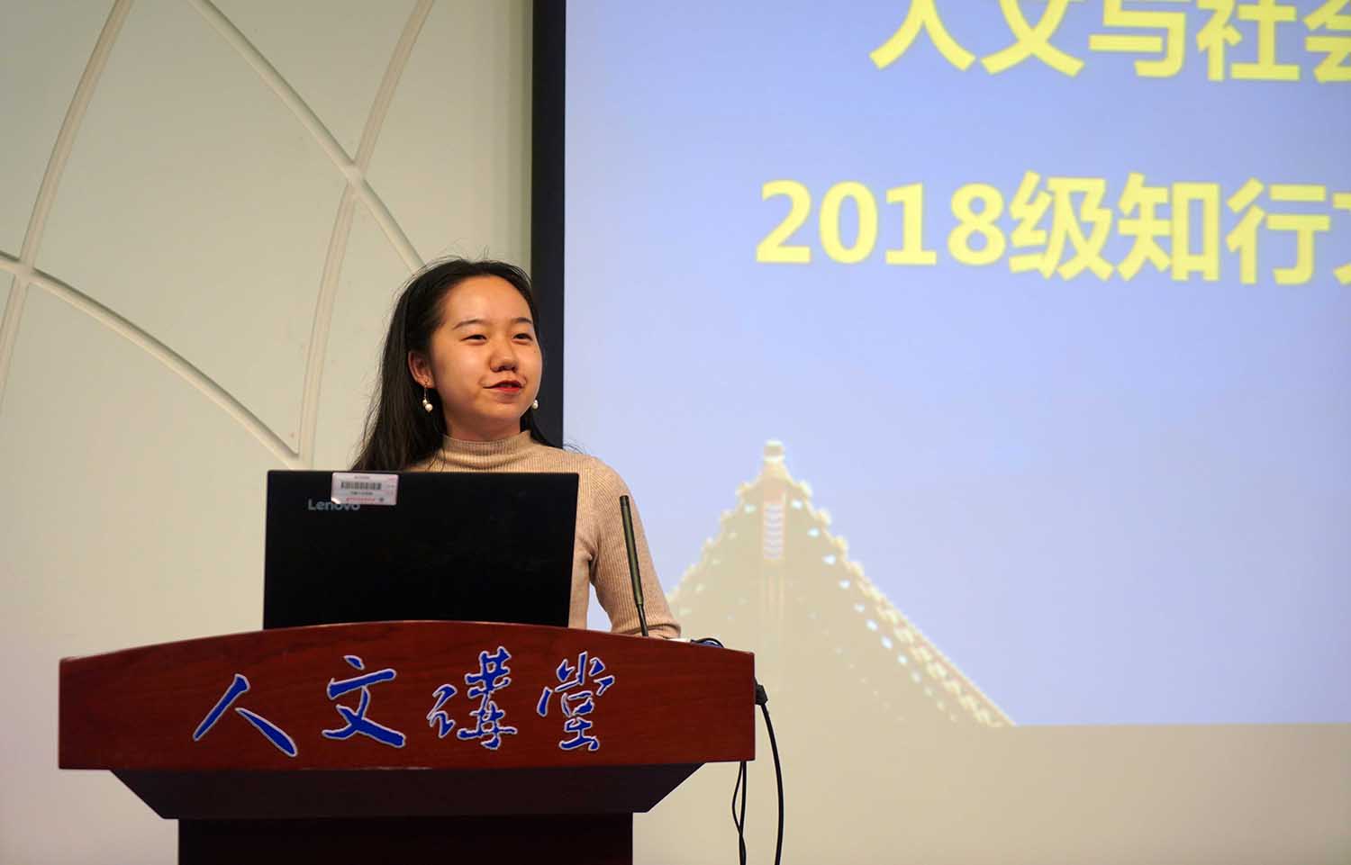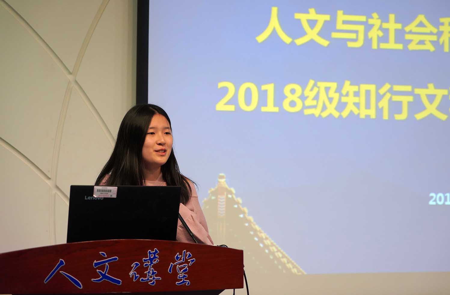 在校生代表、2016级知行文科试验秦依依同学发言,她从学业和生活两个方面向大家介绍了高研院的特色,指出了学业上通识教育压力与收获并重,专业课程应提早设立目标、权衡好时间精力。生活上,高研院给予同学们的归属感、幸福感无可替代,并引领大家积极参与文化游学、毕业大戏等高研特色文化活动。